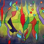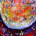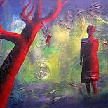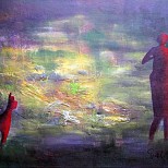 Een globale impressie van het schilderij "Het ontwaken van Yoni" 60x80cm.