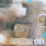 Acryl op doek, gemengde technieken, karton acrylpasta.