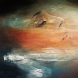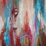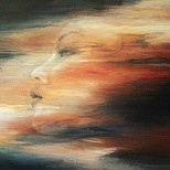 Groot schilderij gemaakt met acrylverf op doek. Het heeft een frame dat niet kan kromtrekken. Het bestaat uit abstractie met het vrouwelijk gelaat. Het bevat veel rode tinten. Het doet denken aan avondrood. Het is mysterieus en romantisch.