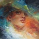 Groot schilderij gemaakt met acrylverf op doek. Het heeft een frame dat niet kan kromtrekken. Het bestaat uit abstractie gecombineerd met het vrouwelijk gelaat. het is mysterieus en romantisch.