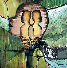 Acrylverf en structuurpasta op een 3D canvasdoek.