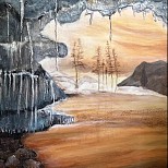 Een globale impressie van het schilderij "Uitbarsting" 30x30cm.